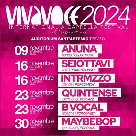 In partenza l’edizione del ventennale della manifestazione di musica vocale più longeva in Italia tra opening gala e ben due “A Cappella Night”. Attesi a Treviso ancora una volta i più grandi nomi e le più acclamate band del panorama mondiale. Vent’anni di show memorabili, 20 anni di voci straordinarie, 20 anni di una manifestazione che ha fatto la storia della musica a cappella in Italia: il VivaVoce International A Cappella Festival, tutti i sabati dal 9 al 30 novembre all’Auditorium Sant’Artemio! 6 gruppi vocali provenienti da Italia, Irlanda, Olanda, Spagna e Germania, si esibiranno in brani inediti e cover pop, jazz, e ancora rock, funky, passando per il genere comedy e la musica celtica: tutto senza strumenti e con il solo uso della voce.